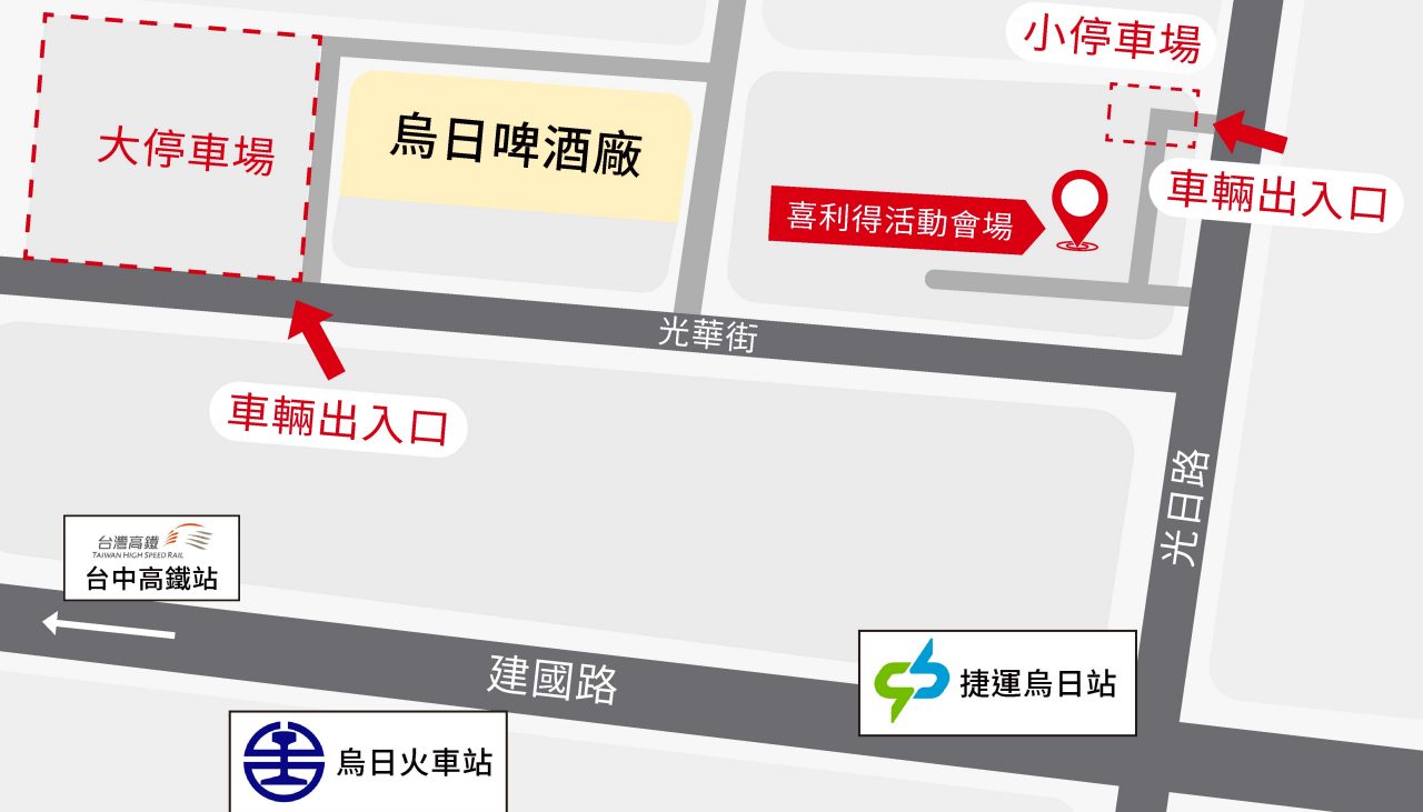 活動會場入口: 近光日路與光華街口,建議Google地圖搜尋 "烏日啤酒廠生產推廣中心"