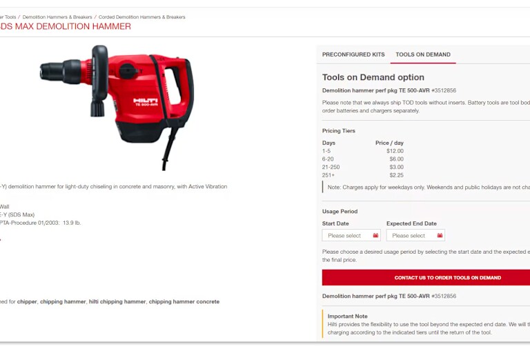 使用喜利得短租服務無需預繳費用。只需支付固定的月費,無需支付運費、換貨或倉儲費用—只需支付需要的費用。短租還意味著更快、更輕鬆的換貨,包括更換損壞的工具,通常在24小時內完成。
