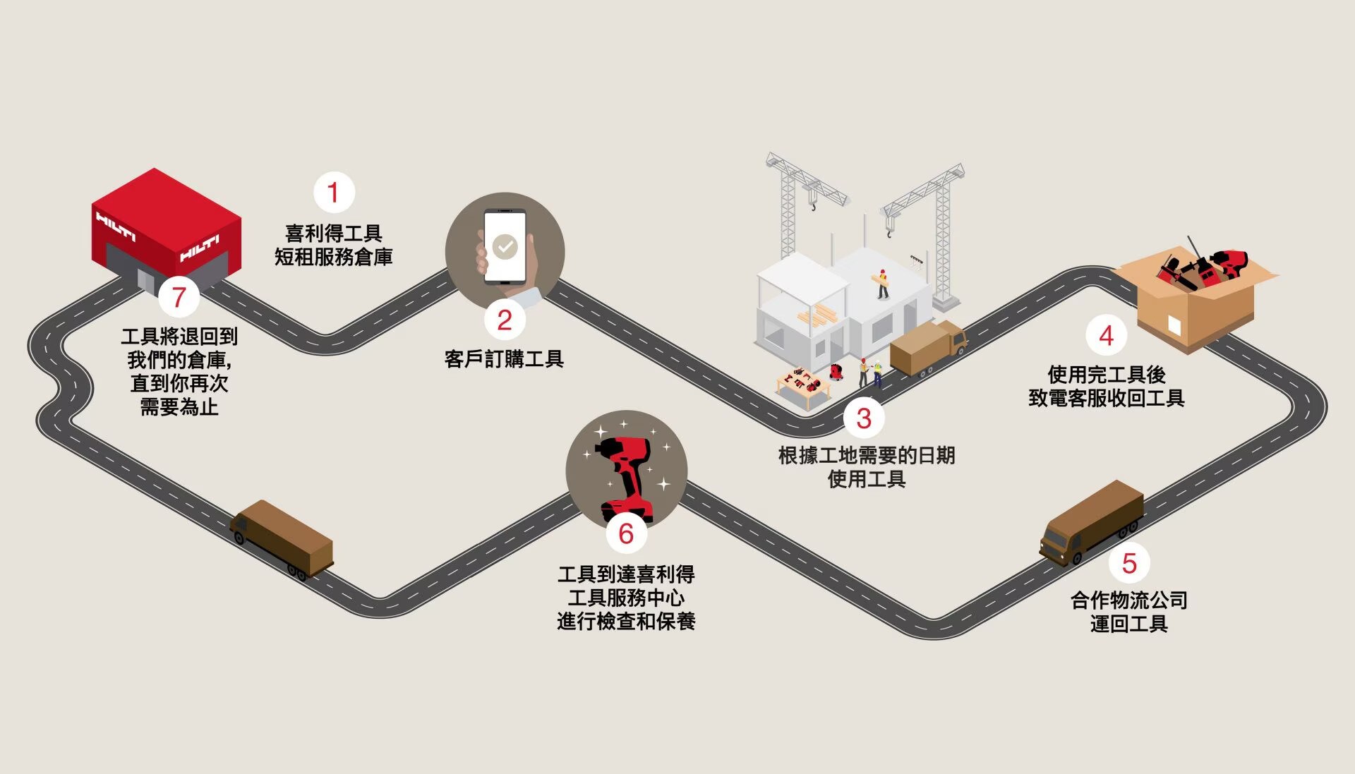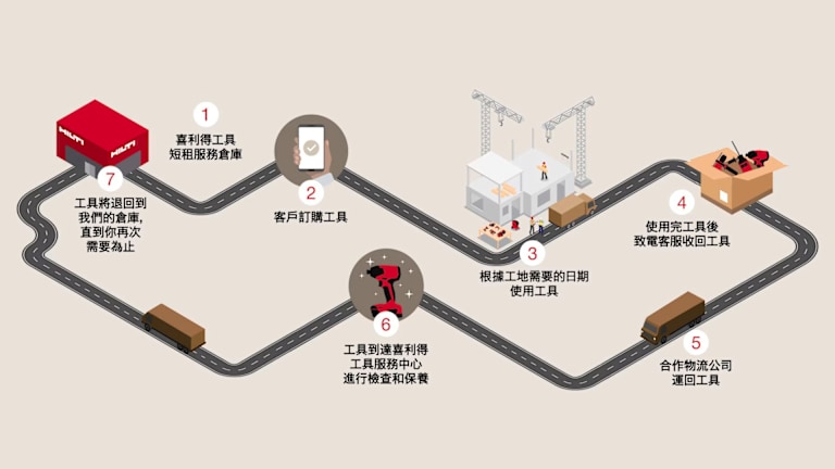 我們可以幫助你評估工具與勞動力的需求,以便你在有需求時擁有合適的工具。喜利得的工具短租服務和工具庫管理服務 (Fleet Management) 為你提供靈活且優化的工具庫存,有助於降低整體成本並增加利潤。