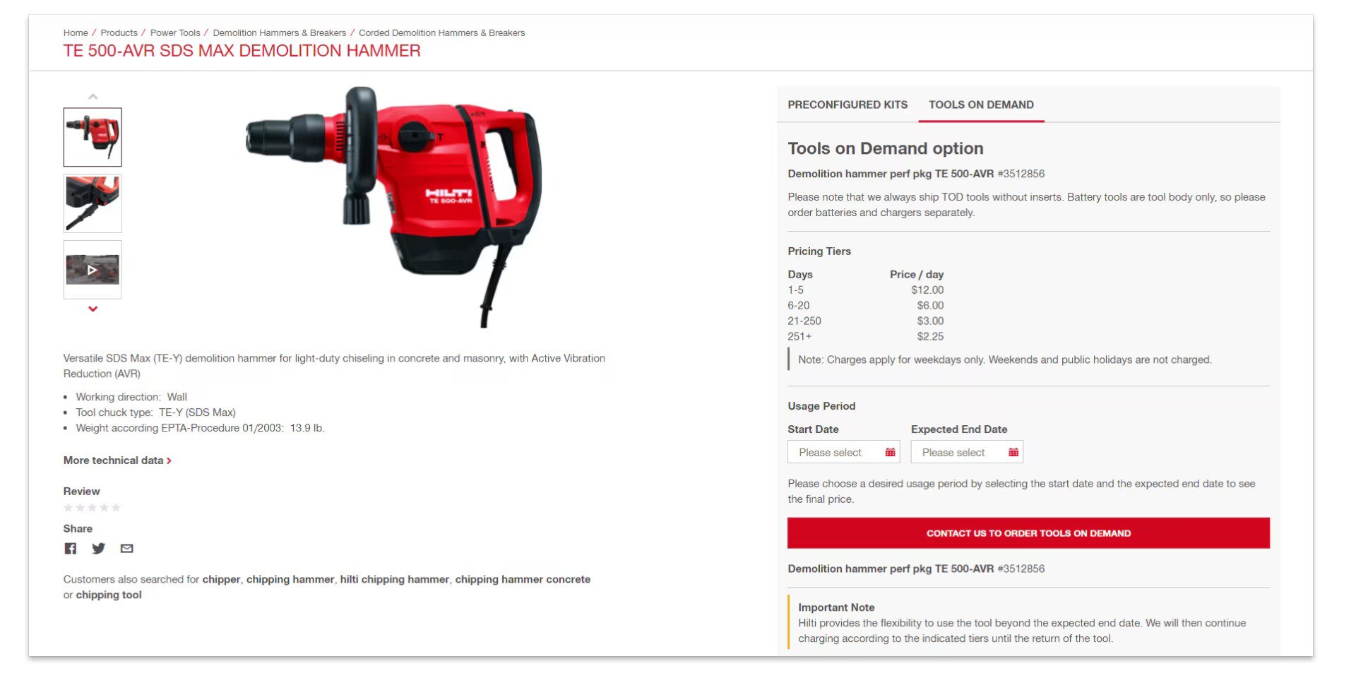 大幅減少你的實際工具總支出,並消除從一個站點到另一個站點移動工具的軟成本,為你提供最大化生產力和利潤的機會。立即聯絡我們,開始使用喜利得的工具短租服務。